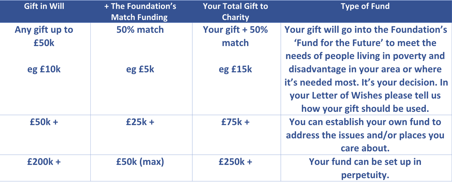 The Legacy Match Fund is an opportunity for gifts in Wills to go even further.